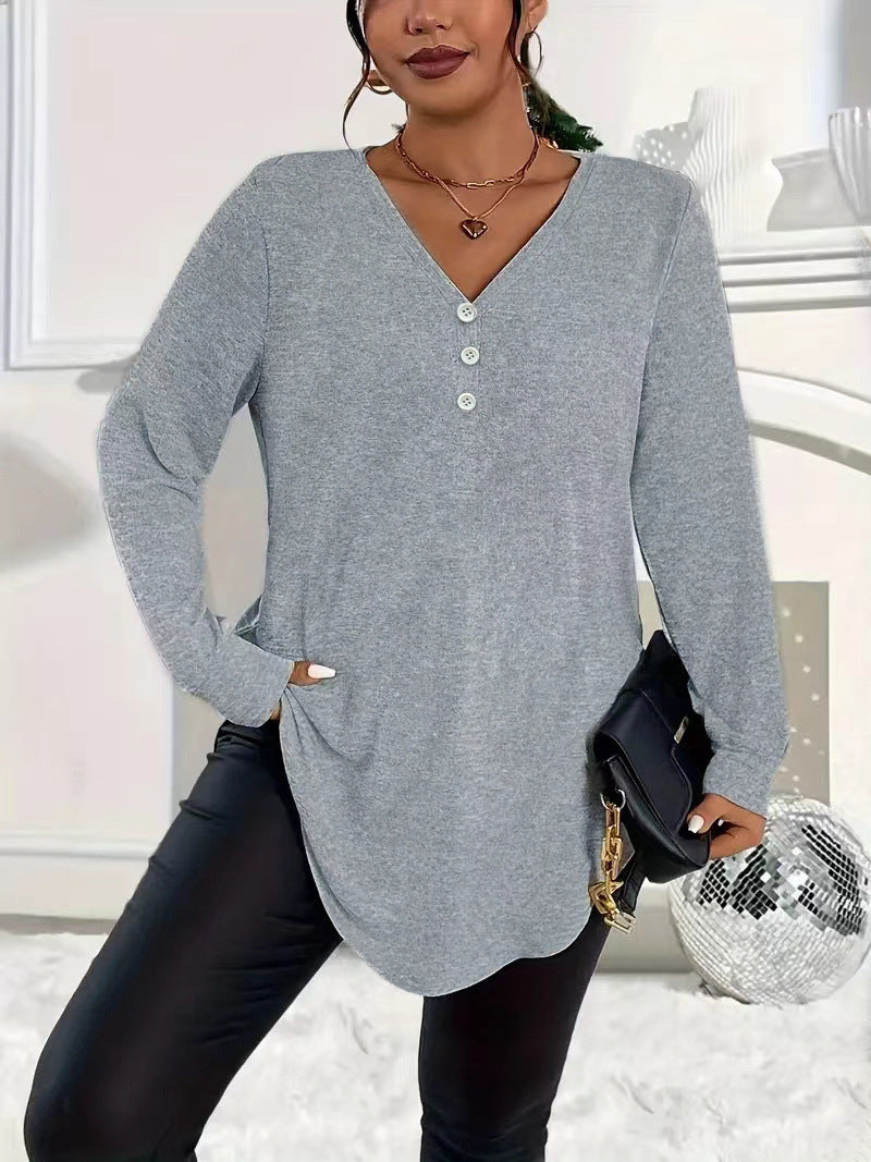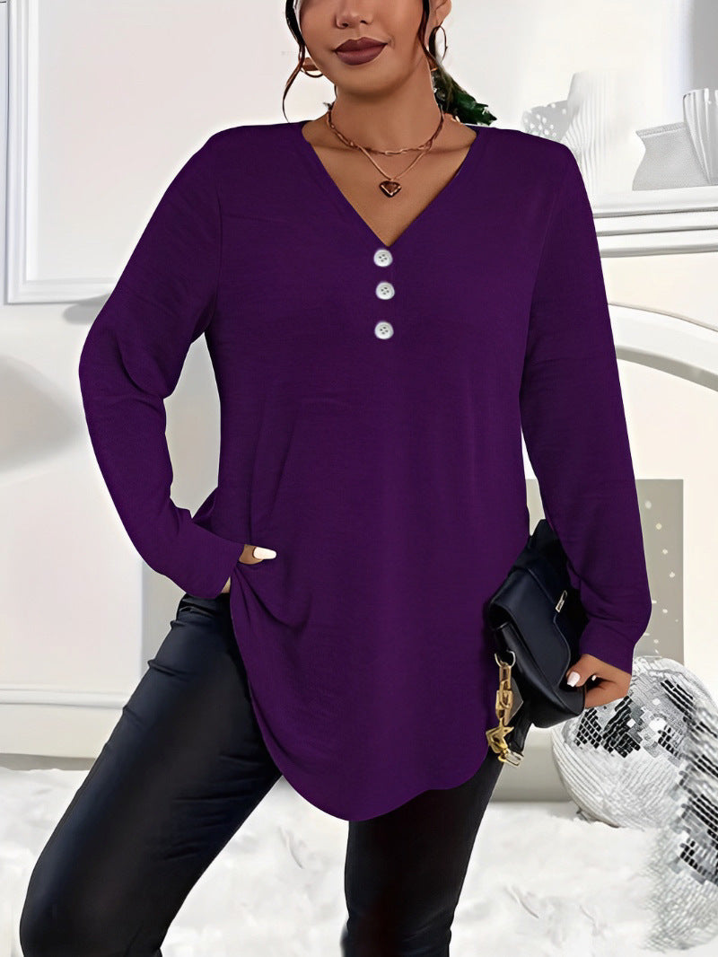 💓LAST DAY PROMOTION - 50%OFF🎀Women's Buttoned V-Neck Long Sleeve Top