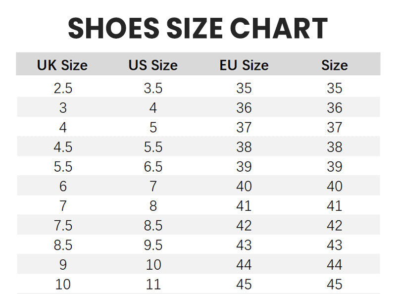 Size: UK2.5-3, UK4-4.5, UK5.5-6, UK6-7, UK7.5-8.5