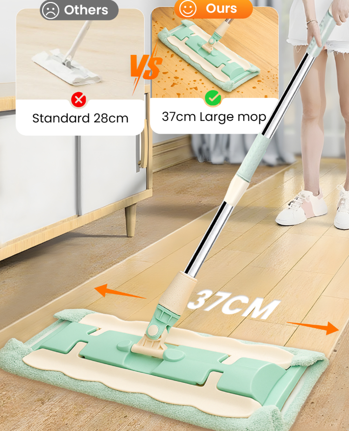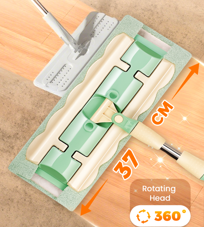 CONVENIENT STEER - Features 360 degree maneuverable swivel head allows you mop around the stairs, furniture and table legs flexibly. 37*15cm mop pad with improved fabric clip-on design covers more area while cleaning, makes cleaning floor fast and efficient. It' also suitable for commercial and industrial applications.