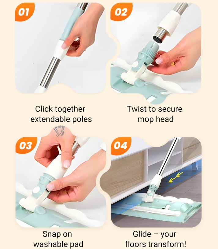 This Stainless Steel Flat Mop is the perfect product for anyone who wants to keep their home clean and tidy. It comes with a reusable, washable mop cloth that can be used for both wet and dry cleaning.