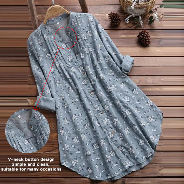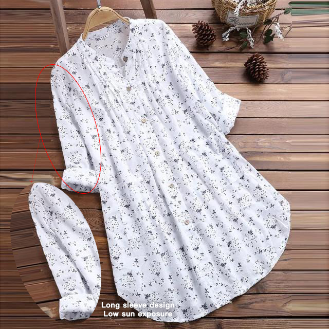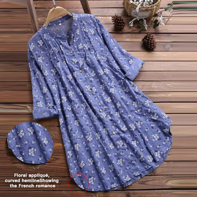 Refresh your wardrobe with the Women's new cotton linen floral loose shirt dress.