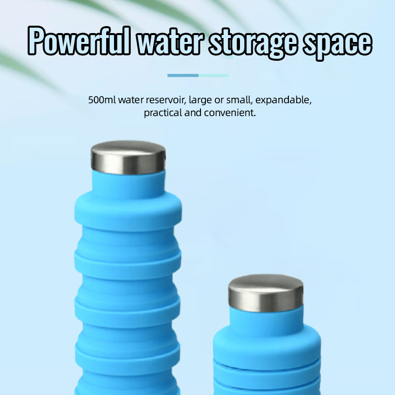 The Collapsible Bottle adjustable volume and size, the unique design allows it to be collapsible from 8.5 inches to 4.5 inches to save 50% of the space, the capacity is 500ml, and the Collapsible water bottle weight is only 0.4 pounds for your daily carrying, easier to storage. Great for kids, girls, boys, women, men.