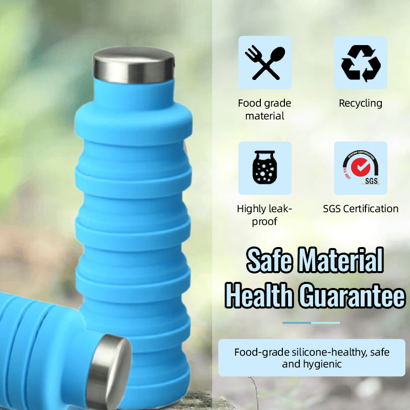 The sport water bottle made of food-grade silicone,BPA-free,Non Toxic,Odorless. Provide you with a practical and safe drink bottle, you can use every day. We recommend not to store liquids that are too hot to prevent scalding your hands.
