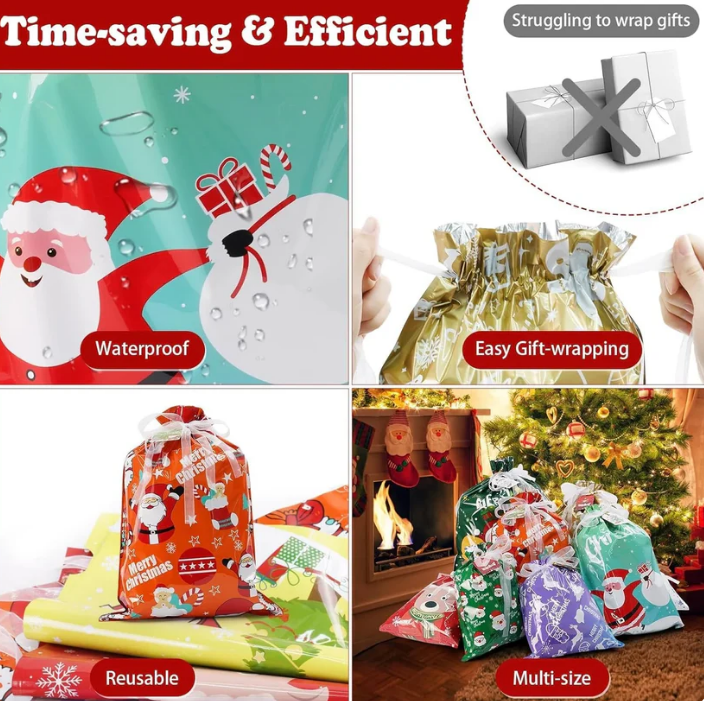 Christmas gift bags have a on the opening mouth, just put the gift into the bags and fasten it, making it easy to close and open, protecting inner items and avoiding things missing.