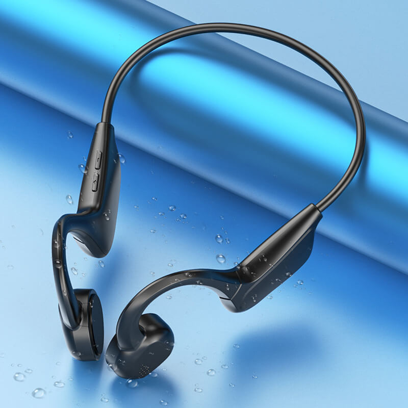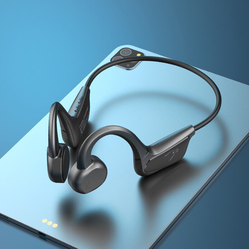 Titanium steel collar, lightweight and resistant to deformation. The part of these bone conduction headphones that fits the face is rounded and covered with soft, comfortable silicone. This is our final choice after many tests and experiences with different earbud surface shapes. The smooth, round, full-coverage silicone surface makes the user feel more comfortable, enjoying total freedom when wearing them.