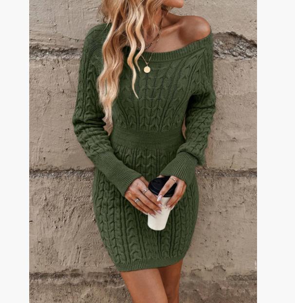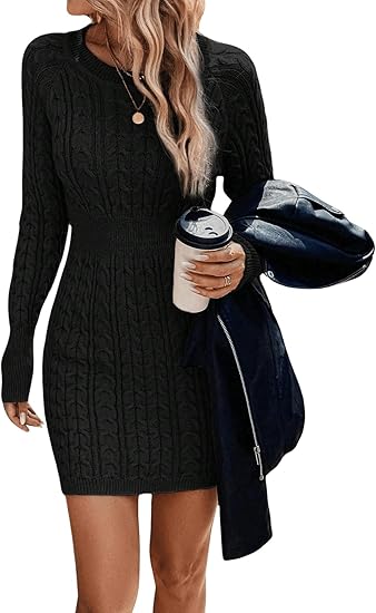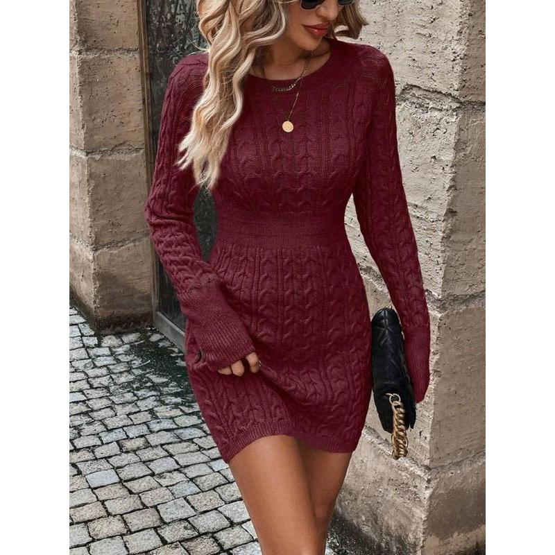 💃Last Day 50% OFF❄️🖤Women's Winter Plain Round Neck Cable Knit Bodycon Sweater Dress