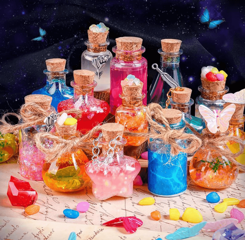DIVERSE BOTTLES & DECORATIONS - Features 12 bottles in four distinct shapes plus various charms and stickers, allowing for endless combinations and beautiful, display-worthy finished creations to show off.