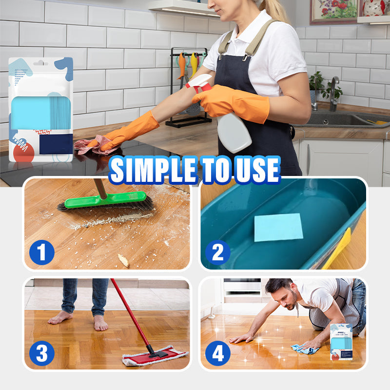 SIMPLE TO USE WITH LONG-LASTING RESULTS - The multi-effect decontaminating floor cleaning sheets are incredibly easy to use. Just dissolve one sheet in water, soak your mop in the solution, and then mop the floor. Despite the simplicity of operation, the stain-removing effect is long-lasting. After use, there's no need to mop frequently — the floor remains clean and glossy for an extended period.