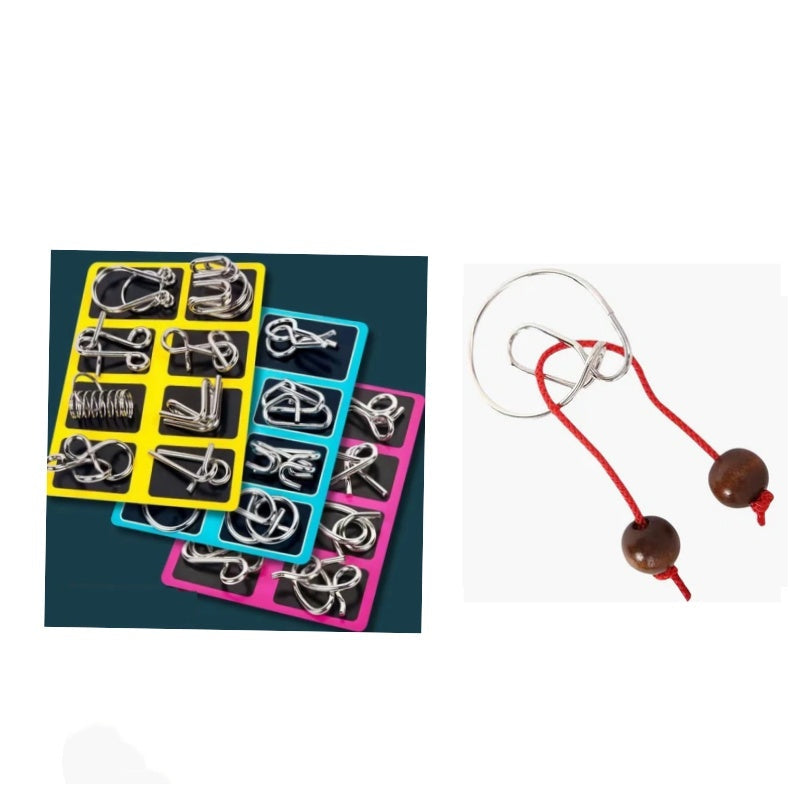 🎅Early Christmas Gift - 50% OFF🎄Metal Puzzle Ring Eight-Piece Blue Version Brain Teasers,Developing the human brain
