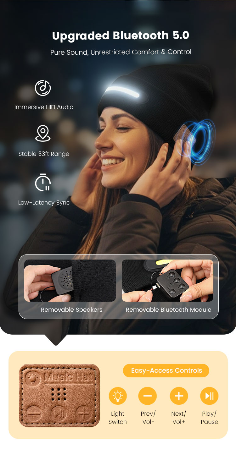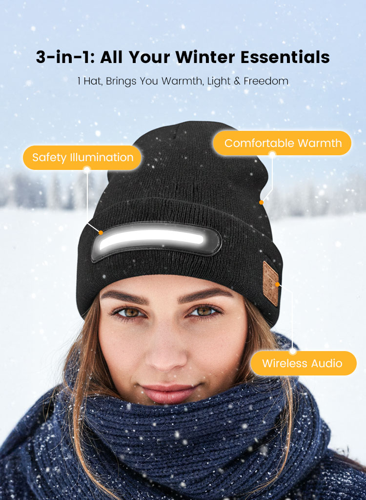 🎄Christmas Hot Sale 50% OFF🎅Rechargeable Bluetooth Beanie Hat with Light