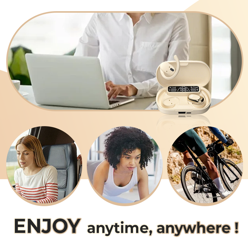 INNOVATIVE EAR-FITTING TECHNOLOGY:Â The Headset features a unique ear-hanging design, offering a secure, comfortable fit that stays in place during even the most intense activities. This design ensures that your ears remain free, enhancing awareness of your surroundings. Perfect for workouts or outdoor use, it combines stability with convenience.