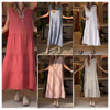 1 * Women's V-Neck Button Sleeveless Tiered Long Dress